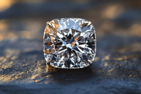 AI Generated. Beautiful diamond sparkling at sunset with glistening reflections on the surface