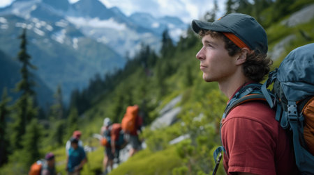 Exploring Nature Portrait of a Man with Brown Hair Hiking in Forest