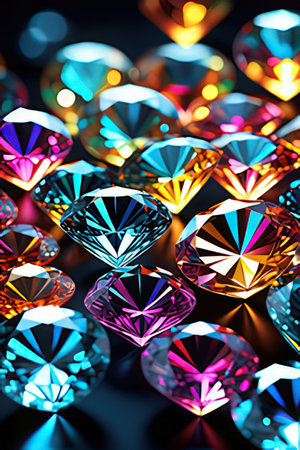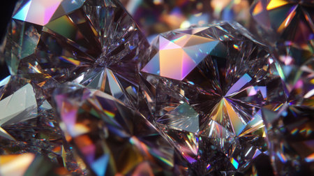 An exquisite close-up of sparkling colorful crystal diamonds, showcasing intricate facets and vibrant reflections of light for a stunning abstract art composition.