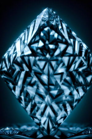 Modern geometric digital artwork evoking a cool, ethereal mood through precise angular facets and dynamic light refraction techniques. Perfect for tech interface elements, winter campaign visuals, luxury branding materials, or app backgrounds appealing to UI designers and digital artists. Its clean, scalable composition ensures seamless integration across print and w... AI-generated illustration.