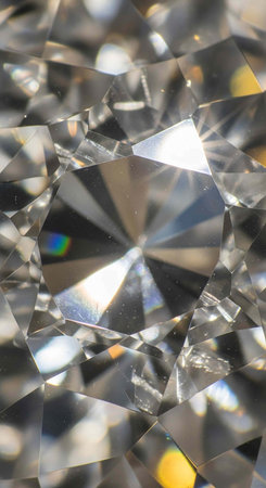This stunning macro shot captures the intricate facets of a diamond, showcasing its exceptional cut and light performance. The play of light creates a mesmerizing display of colors, emphasizing its value.