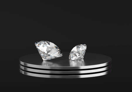 Round diamonds placed on black background 3d rendering