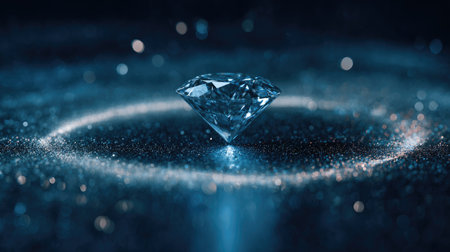 AI Generated. Sparkling round cut diamond on reflective surface