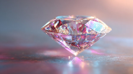 This captivating image showcases a meticulously cut diamond, radiating a kaleidoscope of colors as it reflects light. The multifaceted gem sits elegantly, symbolizing luxury and timeless beauty in its purest form.