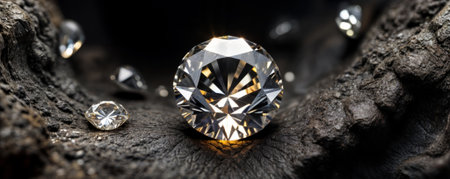 A stunning diamond shines brightly on a rocky surface, showcasing its brilliant cut and exceptional clarity. The natural lighting brings out its intricate reflections.