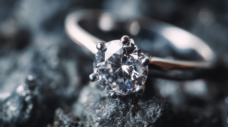 A stunning close-up of an elegant diamond ring shimmering on a textured surface, capturing the essence of luxury and beauty in jewelry design.