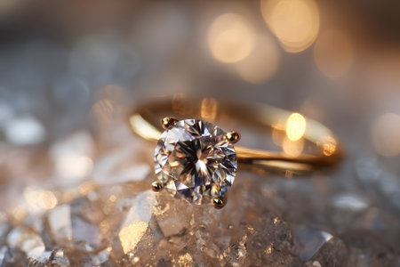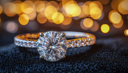 Stunning diamond ring showcased against a shimmering background, highlighting its brilliance and elegance. Perfect for celebrating love and special occasions.