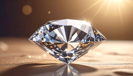 AI Generated. Beautiful diamond sparkling at sunset with glistening reflections on the surface