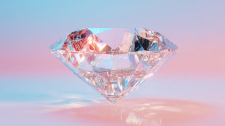 This vibrant 3D rendering showcases a clear diamond, crafted with intricate details and set against a soft pastel background, creating a visually captivating effect.