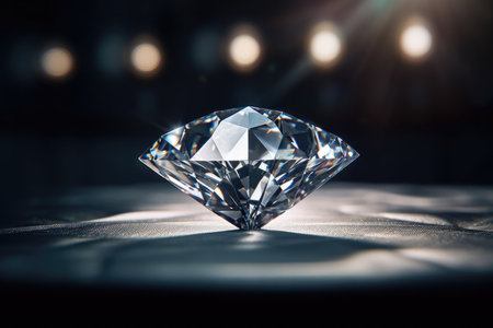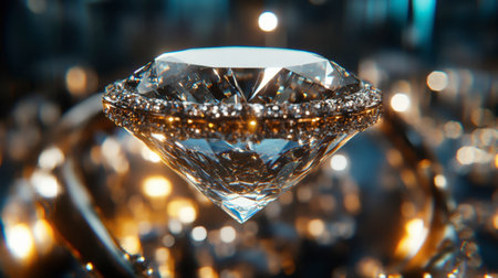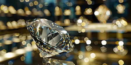 Stunning close-up of a sparkling diamond resting on a dark surface, surrounded by a mesmerizing bokeh background, ideal for luxury design projects.