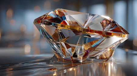 A stunning close-up view of a diamond gemstone showcasing its exceptional clarity and brilliance against a colorful reflective surface, perfect for luxury themes.