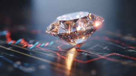 Sparkling diamond rests on financial chart, symbolizing wealth and investment. intricate facets of diamond reflect light beautifully, creating sense of luxury and prosperity