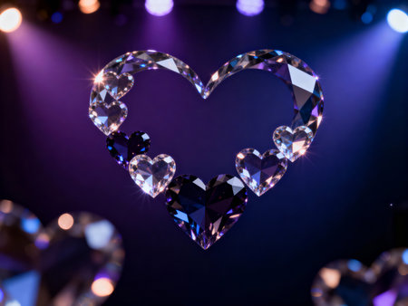Beautiful diamond heart on a dark background with bokeh.