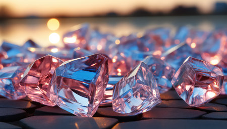 This image showcases glimmering crystal gems that emit luminous reflections against a dark background, ideal for elegant decor or fashion illustrations.