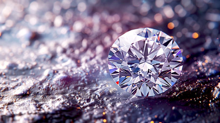 Stunning close-up of a sparkling diamond resting on a dark surface, surrounded by a mesmerizing bokeh background, ideal for luxury design projects.