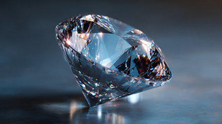 A captivating image showcasing a precisely cut diamond, radiating light and reflecting reflections on a marble-like textured surface. Its clarity and brilliance evoke luxury and elegance, suitable for sophisticated projects.