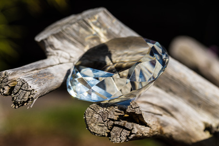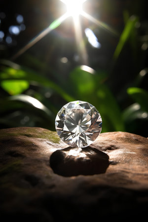Diamond on a rock in the garden with sunbeams and lens flare