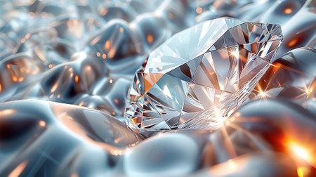 This stunning close-up image features a clear diamond that sparkles beautifully, surrounded by soft shimmers and reflections, creating an alluring luxurious visual effect.