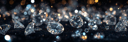 A mesmerizing arrangement of sparkling diamonds illuminated by soft light, showcasing their brilliant reflections and exquisite clarity, perfect for luxury and elegance.