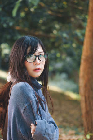 portrait of asian teenager wearing eyeglasses standing outdoor