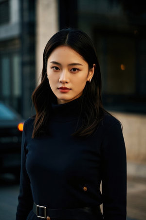 Fashionable women's street photo black turtleneck