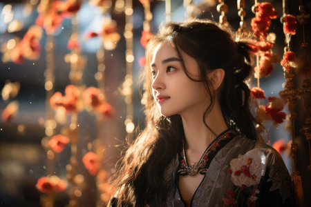 Beautiful asian woman in traditional cheongsam dress, portrait