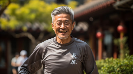 Asian man smiling in the sun outdoor photo