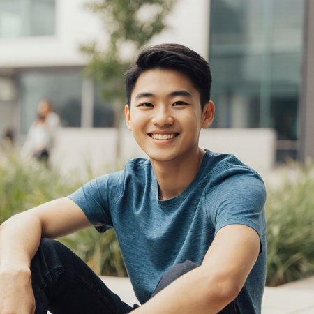Young Asian man with a bright smile in the sun