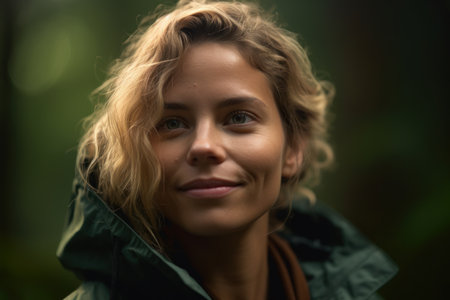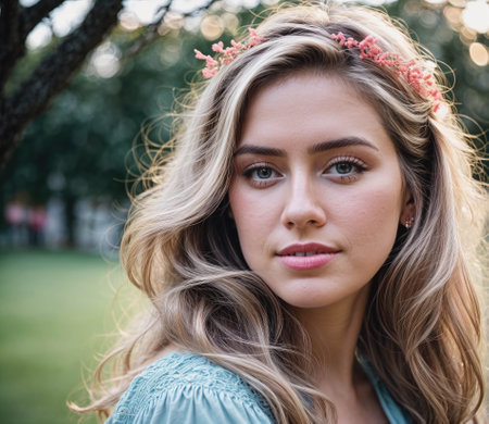 Portrait of a beautiful young woman with blue eyes and curly hair