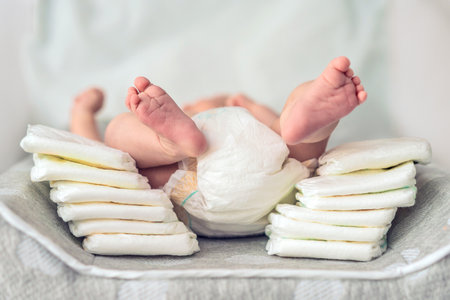 baby disposable diapers, newborn and baby hygiene concept