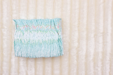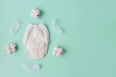 Baby diaper on a blue background. with copy space. Hygiene and child care.