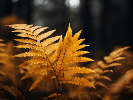 Beautiful yellow fern leaves in the autumn forest. Nature background
