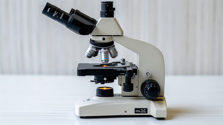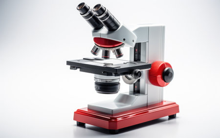 Optical microscope isolated on white background with space for text