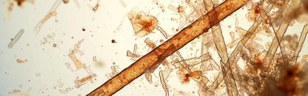 Scalp and hair follicles of human under the microscope in Lab.