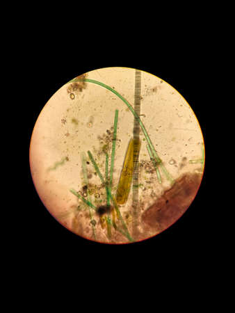 Protozoa and Green Algae in waste water under the microscope.
