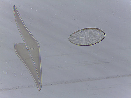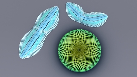 Diatoms are photosynthesising algae, they have a siliceous skeleton and are found in almost every aquatic environment including fresh and marine waters.