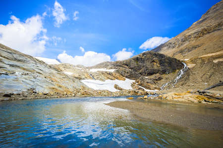 Flow of melting snow at the Grossglockner Mountain Nature Park, Austria