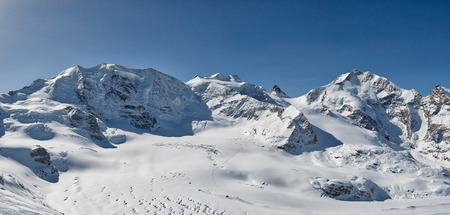Bernina and Palu mountain range with glaciers in the Alps, Engadine, Switzerland