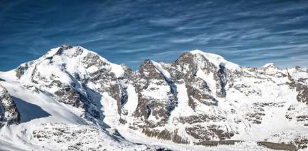 Mountain panorama of the Rhaetian Alps Piz Bernina and Piz Morteratsch in spring