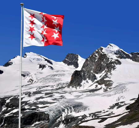 Strahlhorn,Rimpfischhorn and Allalinhorn with Wallis flag - Swiss Alps