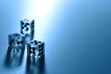 3 dice on a white background in the dark, blue tone
