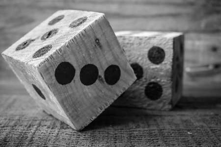 Dice with a wooden background
