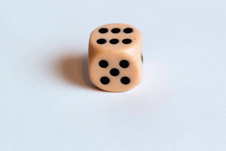 Game dice close-up in reflection. game dice six