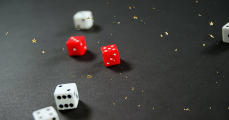 Image of stars falling over dices. Casino, gambling and digital interface concept digitally generated image.