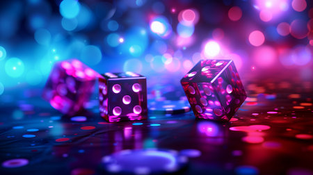 Dice on black background with red blue neon light
