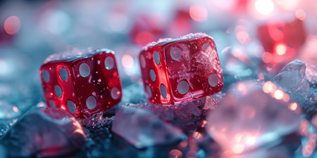 red dice in the ice and casino floor,.