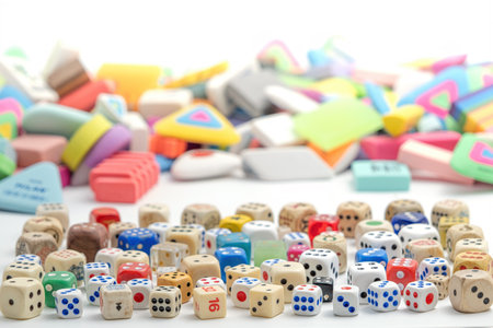 view of colourful dices and erasers