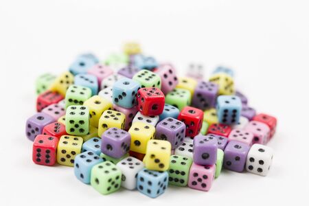 Assorted colorful dice on white