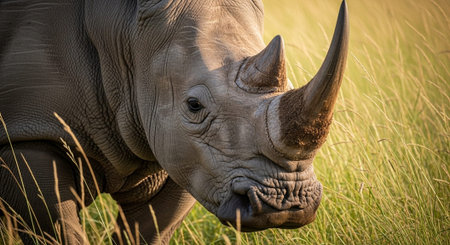 Rhino grazing on grass outdoors in nature