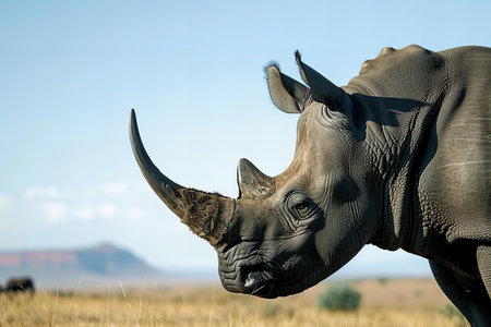 Portrait of a rhinoceros with two horns outdoors